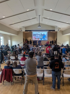 The night before, our team met at the church we were hosting to set up for the event. With the help of team 5064 Aperture Science, who brought a field so that we could have one for matches and one for practicing, they also brought equipment to live stream the matches.