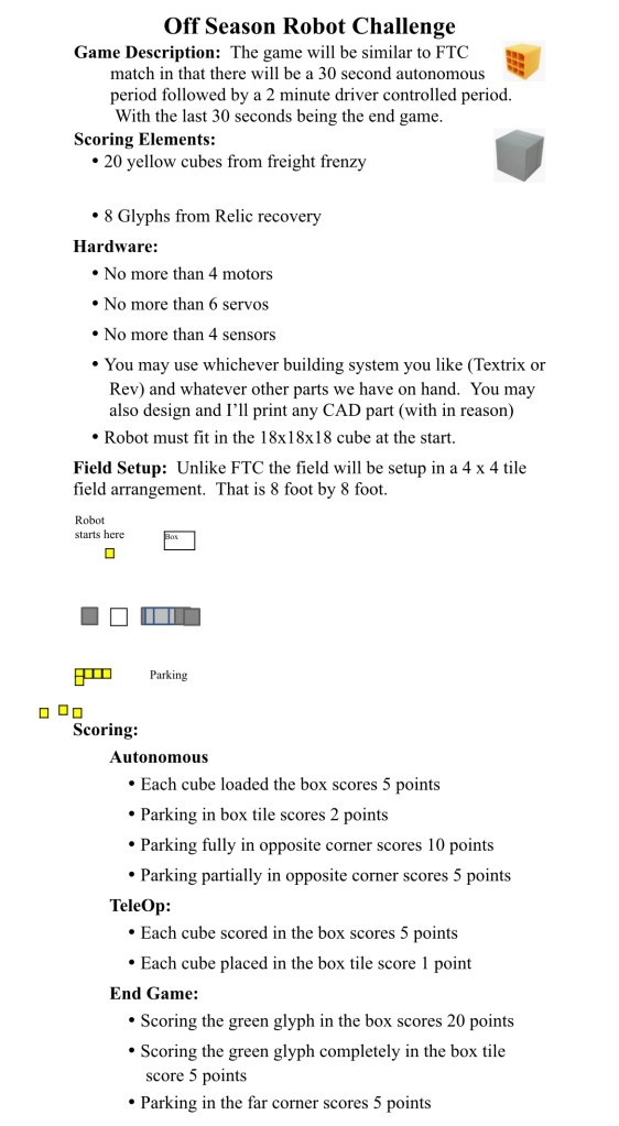 At the end, our winners of the mini off-season challenge was Laurens’ team with Maddie and Reid. Each member was able to learn valuable skills and learn to work with their teammates. Splitting the team creating challenges as members were unable to rely of certain aspects they were used to being accomplished by others. We would highly recommend other teams to do this and we plan on continuing this learning experience for future seasons.
