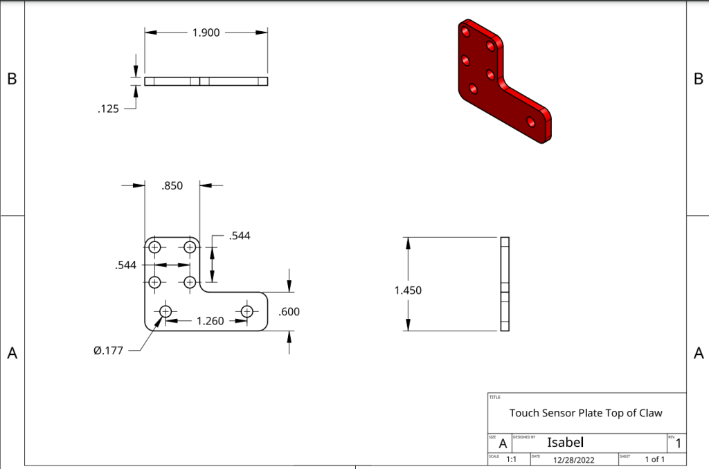We use the Touch Sensor Plate to attach a touch sensor at the top of our claw. This lets us know when the claw has reached the top and stops it from going too far.